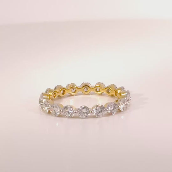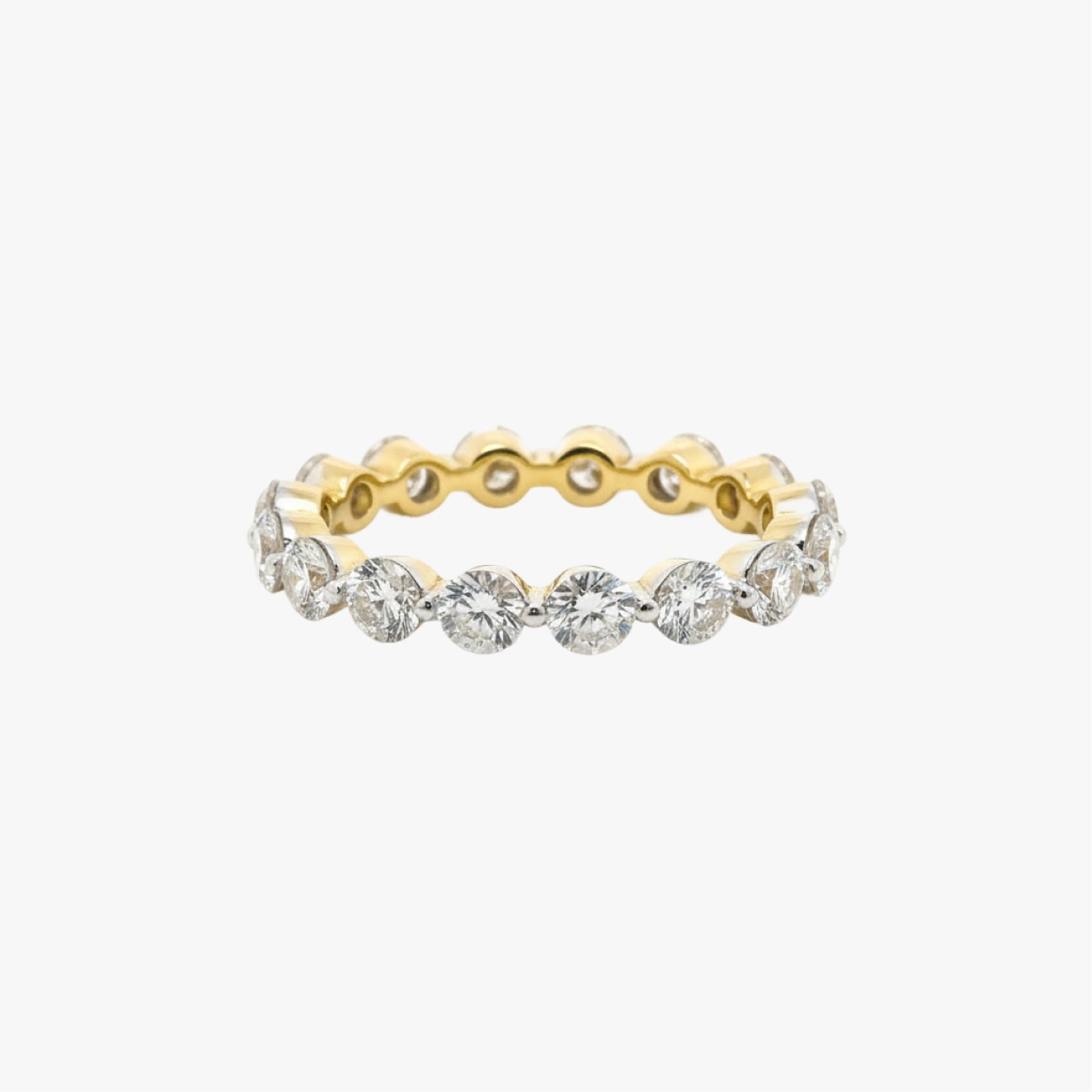 The Round Dainty Eternity band features a delicate 14K solid yellow gold band encircled with petite round diamonds, offering subtle sparkle and timeless elegance. With D color, VS clarity, it provides a refined look that’s perfect for daily wear or special occasions. Available in varying carat weights (1.17 and 1.78 cttw), the size 6.5 version features 18 to 22 diamonds ensuring a beautifully understated shine.