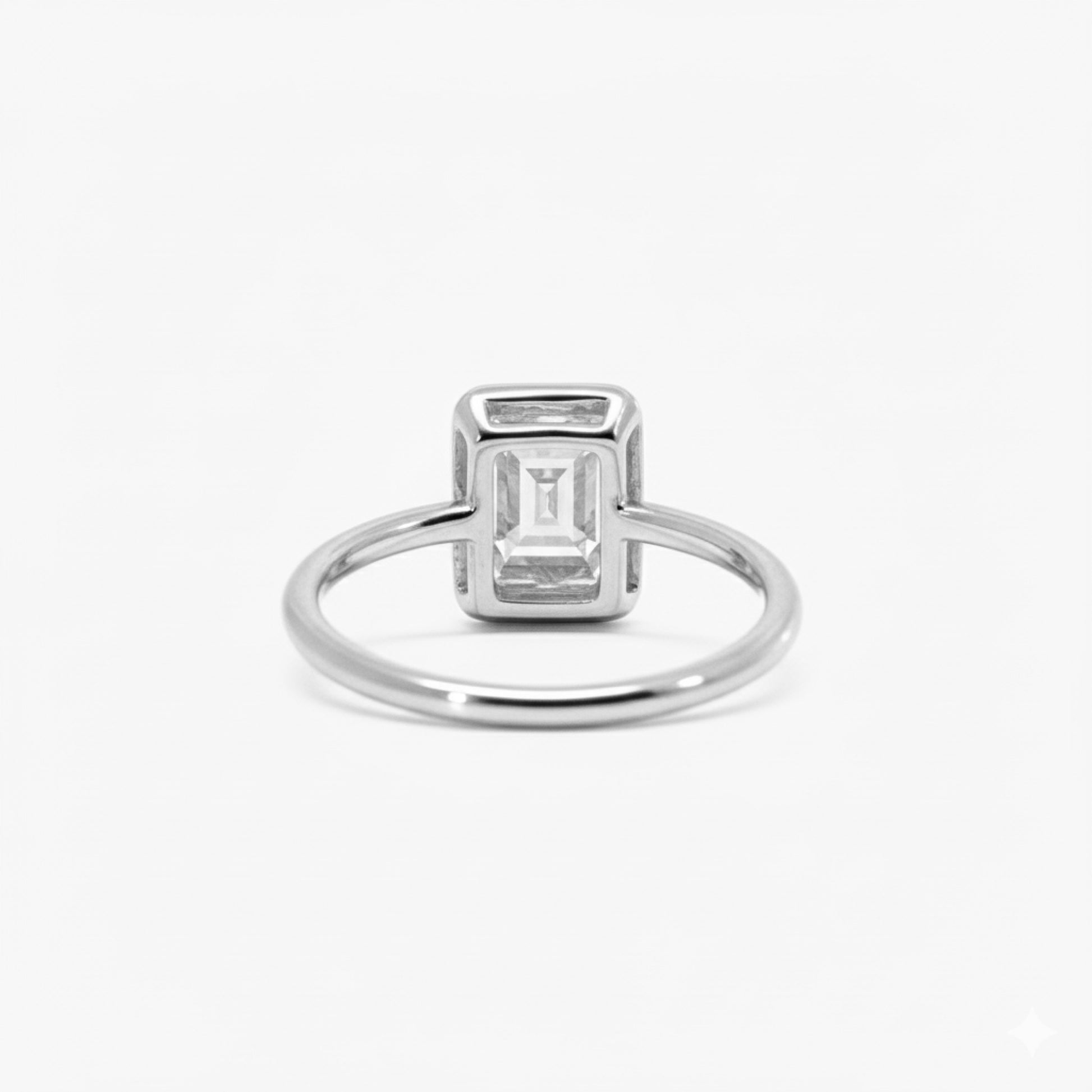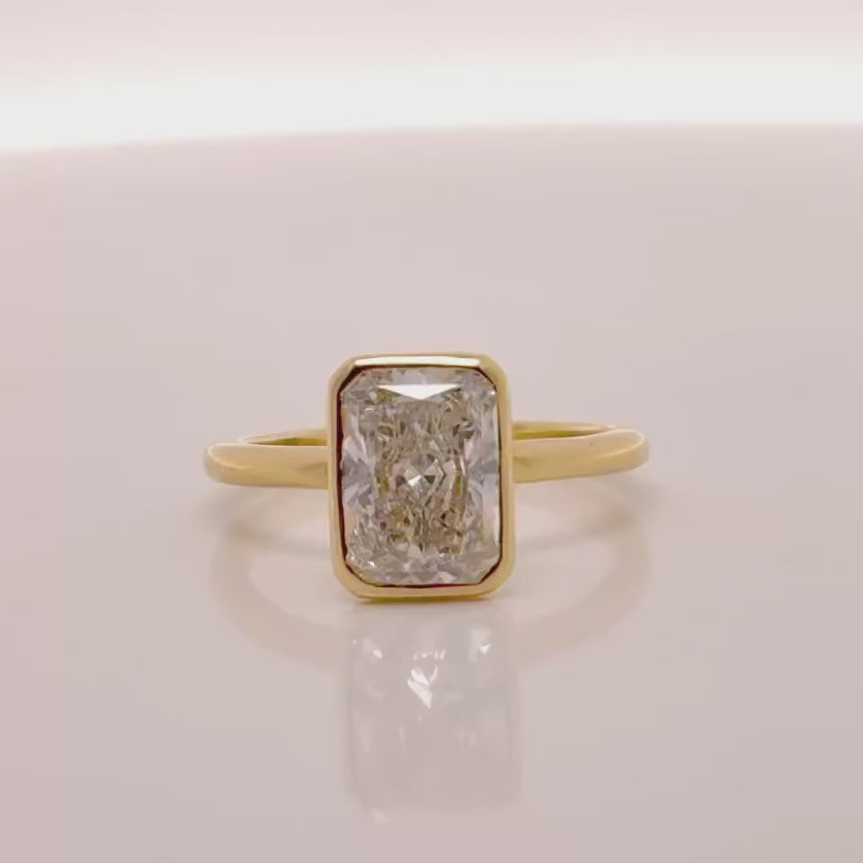 The Bezel Radiant Diamond Solitaire features a 2.5-carat radiant-cut diamond secured in a smooth, modern bezel setting. With G color, VS2 clarity, and an excellent cut, this piece blends bold sparkle with minimalistic design, making it an elegant yet striking choice. The bezel setting enhances the diamond’s brilliance while offering a sleek, secure design for timeless sophistication.