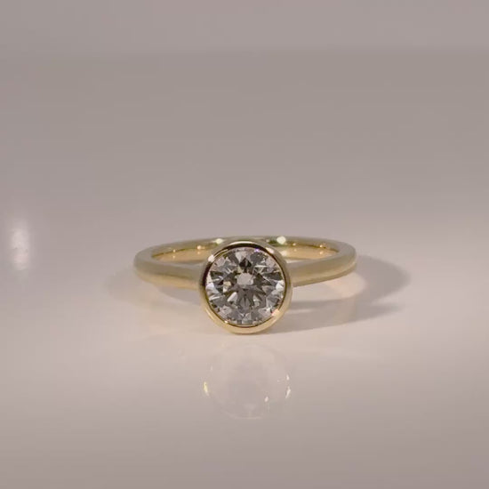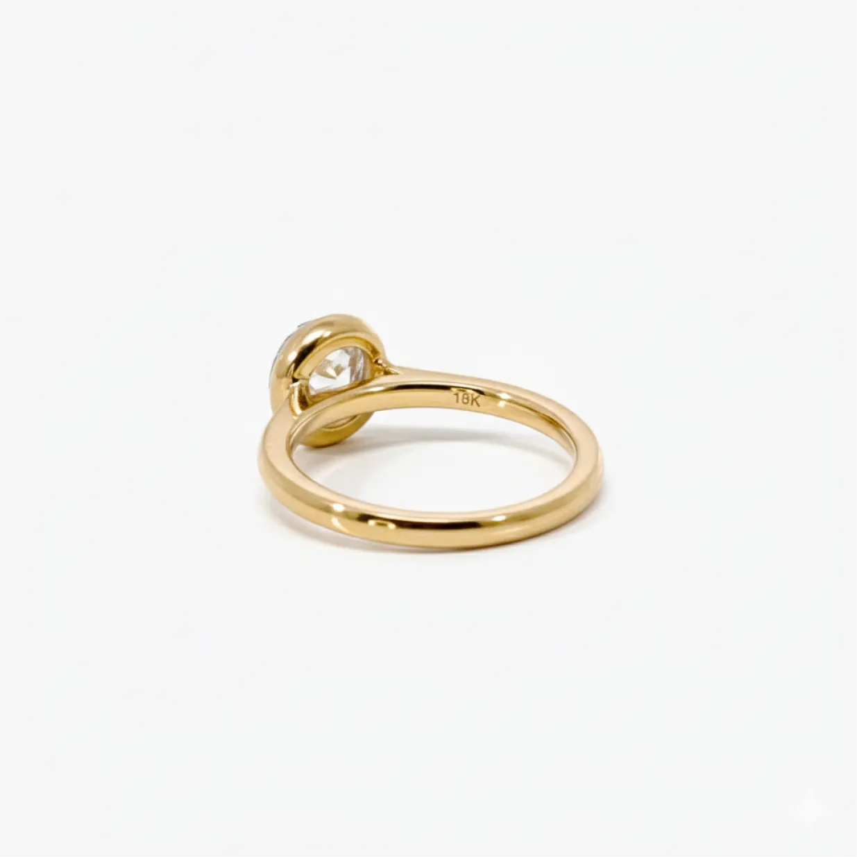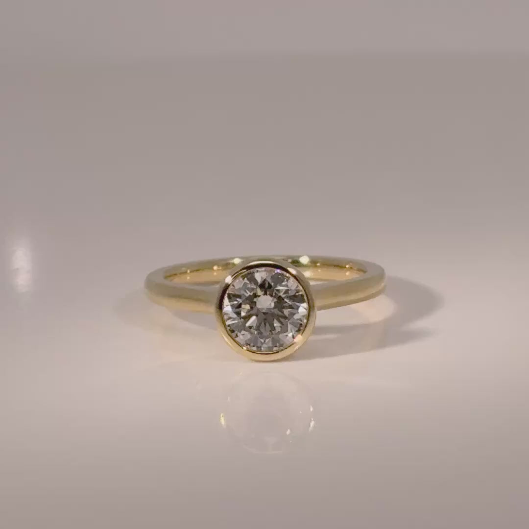 The Bezel Round Diamond Solitaire features a brilliant 1.08-carat round diamond set in a sleek bezel, accentuating its natural shine with modern simplicity. Crafted in 18K solid yellow gold with D color, VVS2 clarity, and an excellent cut, this piece combines contemporary elegance with timeless brilliance, making it a perfect choice for those seeking understated sophistication.
