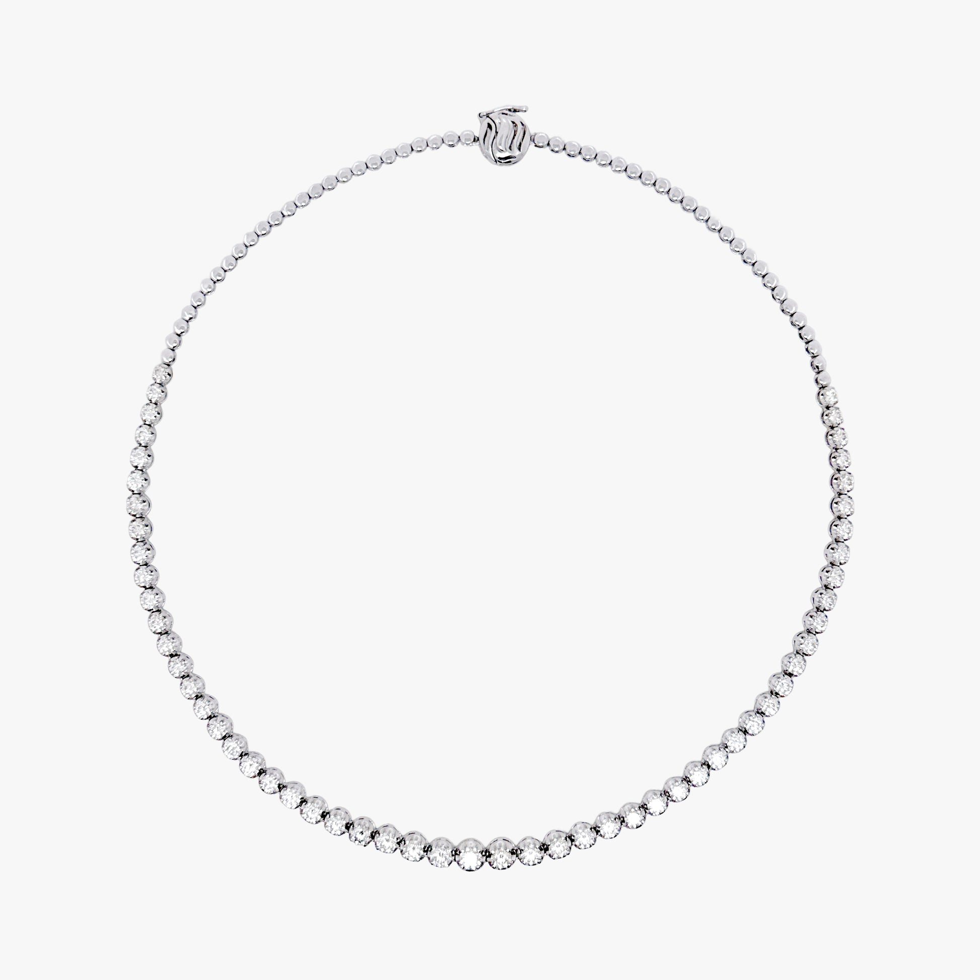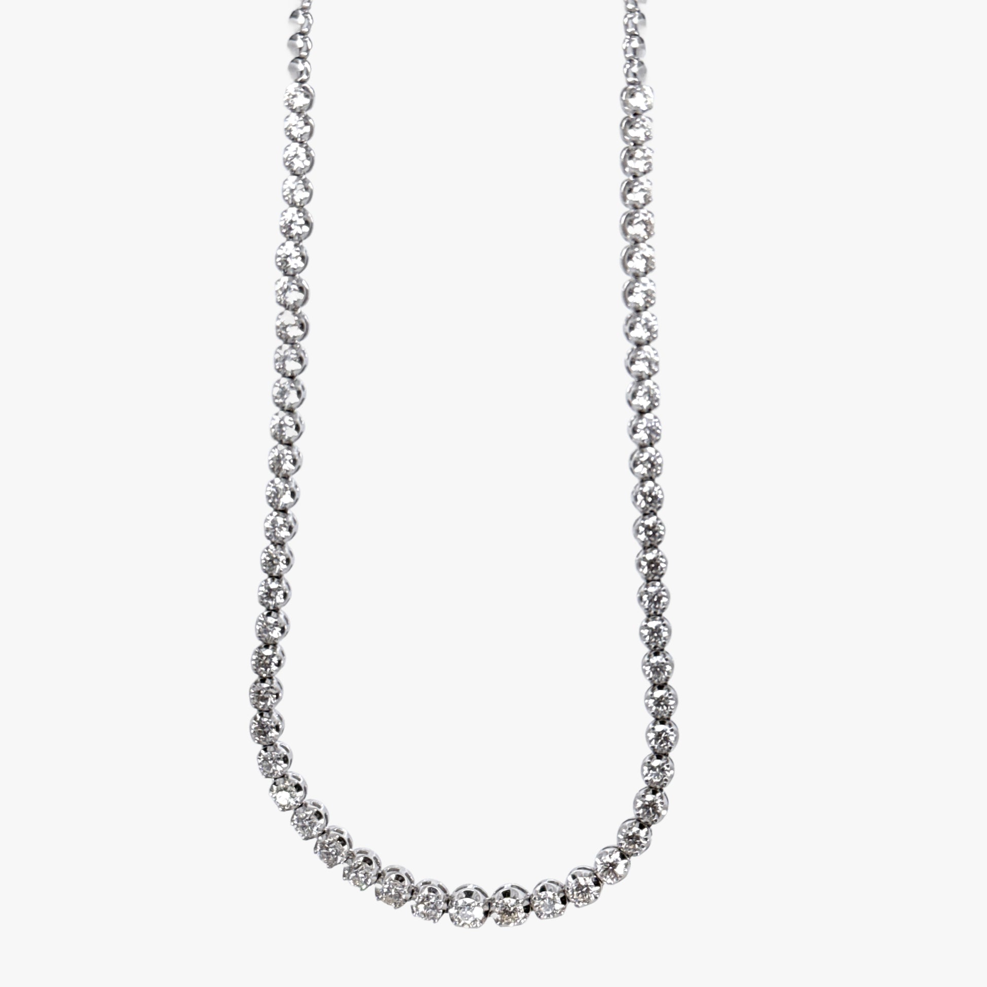 An elegant line of brilliant diamonds, each meticulously set to create a timeless tennis necklace that dazzles with every movement.